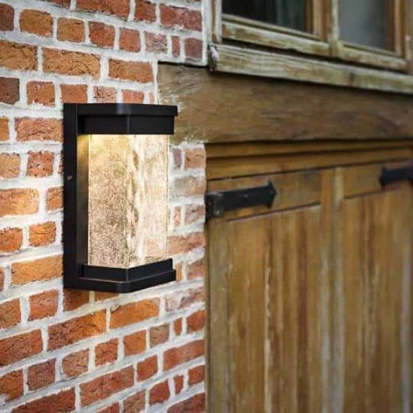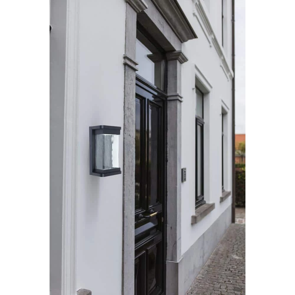 Black Medium Outdoor Integrated LED Wall Mount Lantern with seeded glass. Enhances your curb appeal. Only uses 16.5-Watt of energy.