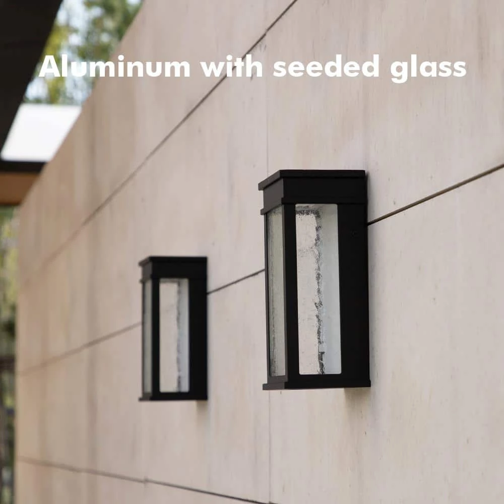 This Lutec Black Outdoor Integrated LED Wall light with its clear seedy glass and dusk to dawn feature is perfect for many outdoor locations. From your front door to your back patio and everywhere in between this light will provide you with-years of warm light coming from its 810 Lumens of integrated LEDs. All mounting hardware is included for easy installation.