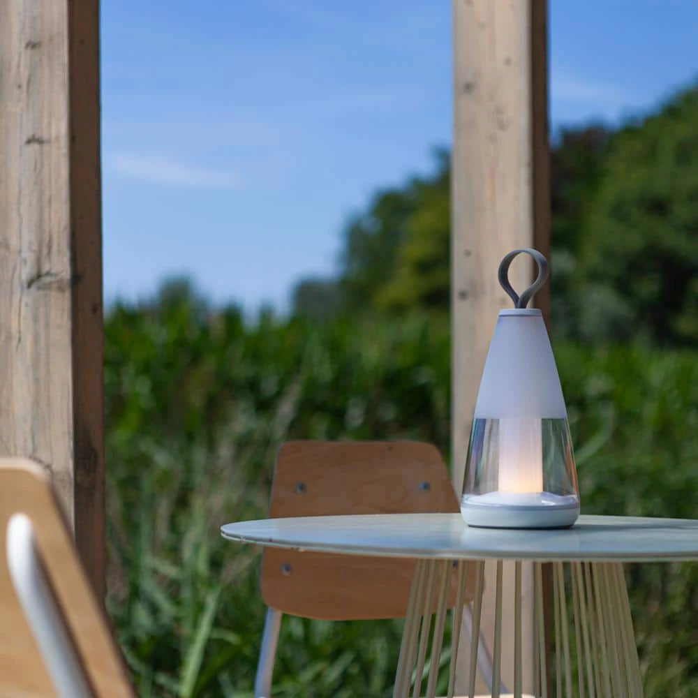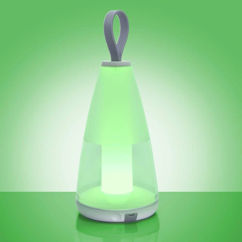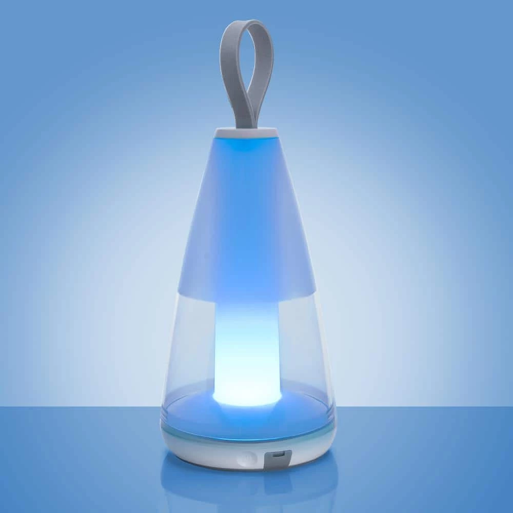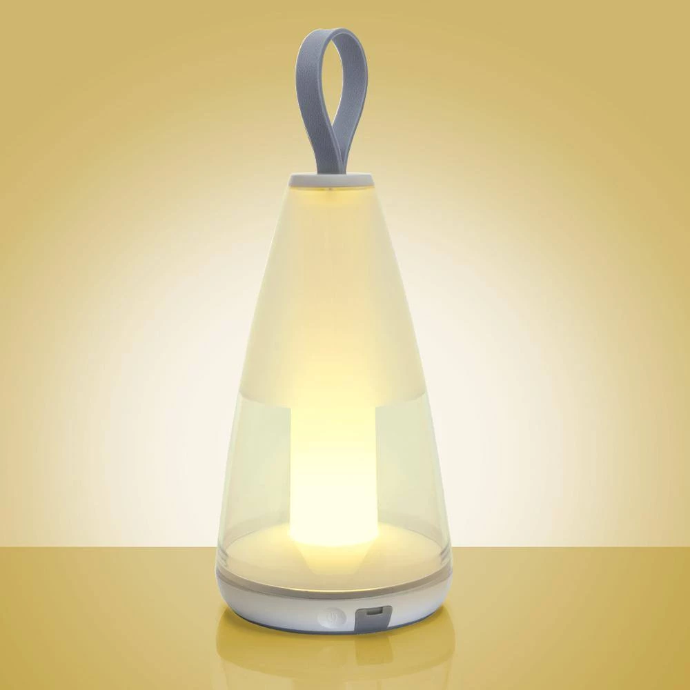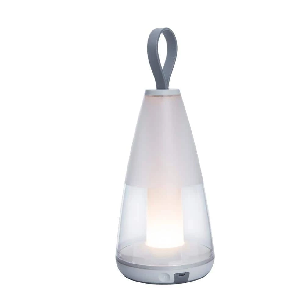This 11.5 in. Portable White Outdoor Table Lamp is lightweight and portable making is the perfect light to take anywhere. The unique design of this light, along with the adjustable colors, dimming function and remote operation is great for outdoor parties, camping, poolside, gardens and when you’re finished outside bring it indoors to provide light where you need it there. Easy charging for the battery due to the included USB cable.
