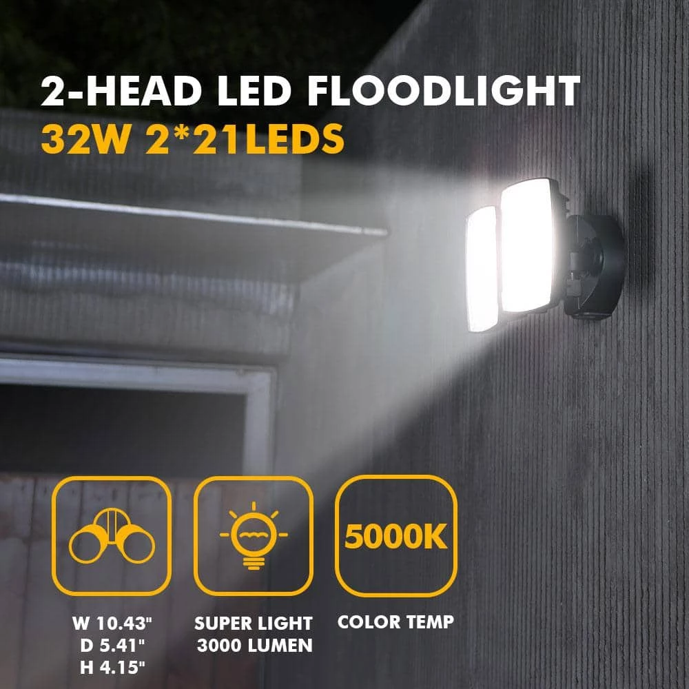 This Integrated LED Black 2-Head Outdoor Security Light comes with adjustable heads so you have light where you need it most. With 3000 Lumens it’s perfect for walkways, entryways, driveways or anywhere you want to have light for that secure feeling. Excellent heat dissipation and durable design the LEDs have a lifespan up to 50,000-hours.