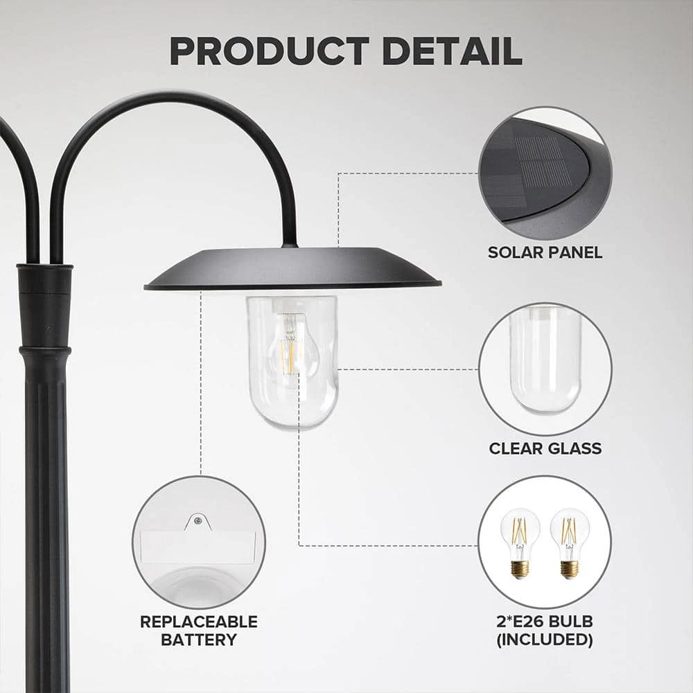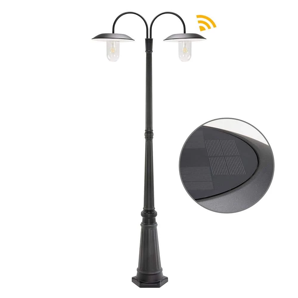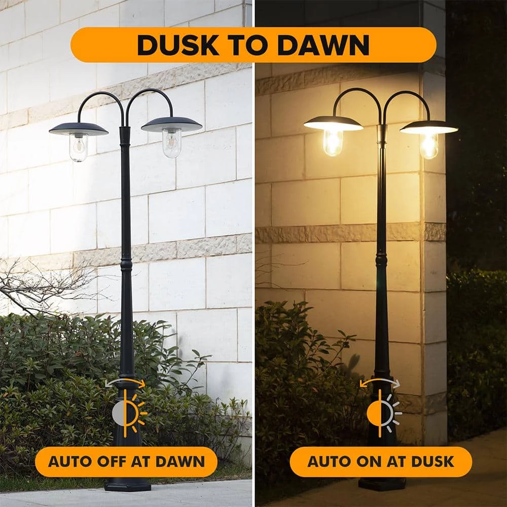 This Solar Powered 2-Head Post Light is perfect for so many outdoor locations. With no wiring needed you can install this on your patio, walkway, deck, near your driveway, pool areas, anywhere you need light. Powered by the sun, it will charge during the day and automatically illuminate at dusk. On a full charge you will get up to 8-hours of 100% brightness. Constructed of durable rust-resistant cast aluminum and cold rolled steel it’s perfect for any outdoor environment.