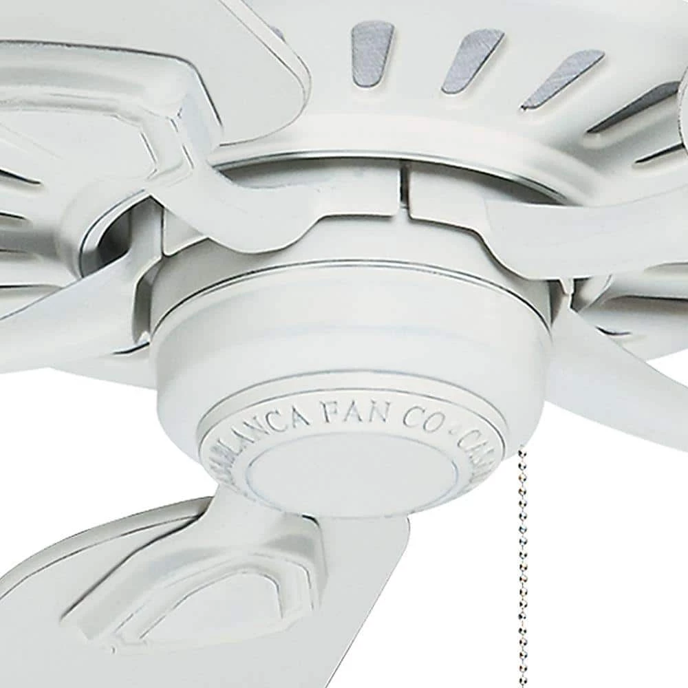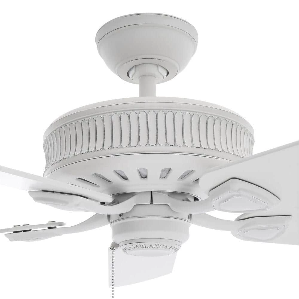 It’s all in the details with the classic, Ainsworth ceiling fan from Casablanca. Columns grace the Cottage White motor housing of this 5-blade fan to create a sophisticated, timeless look. A 4-speed pull chain comes standard to allow for quick adjustments while the Direct Drive motor provides unparalleled power, silent performance and reliability over decades of daily use. These details combined with a 54 in. blade span gives the Ainsworth a truly distinguished look at just the right size.