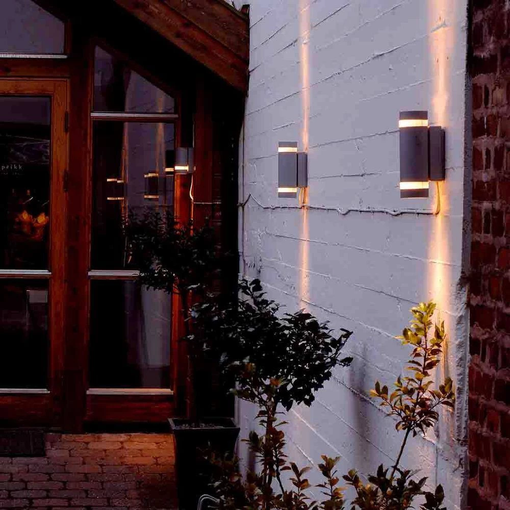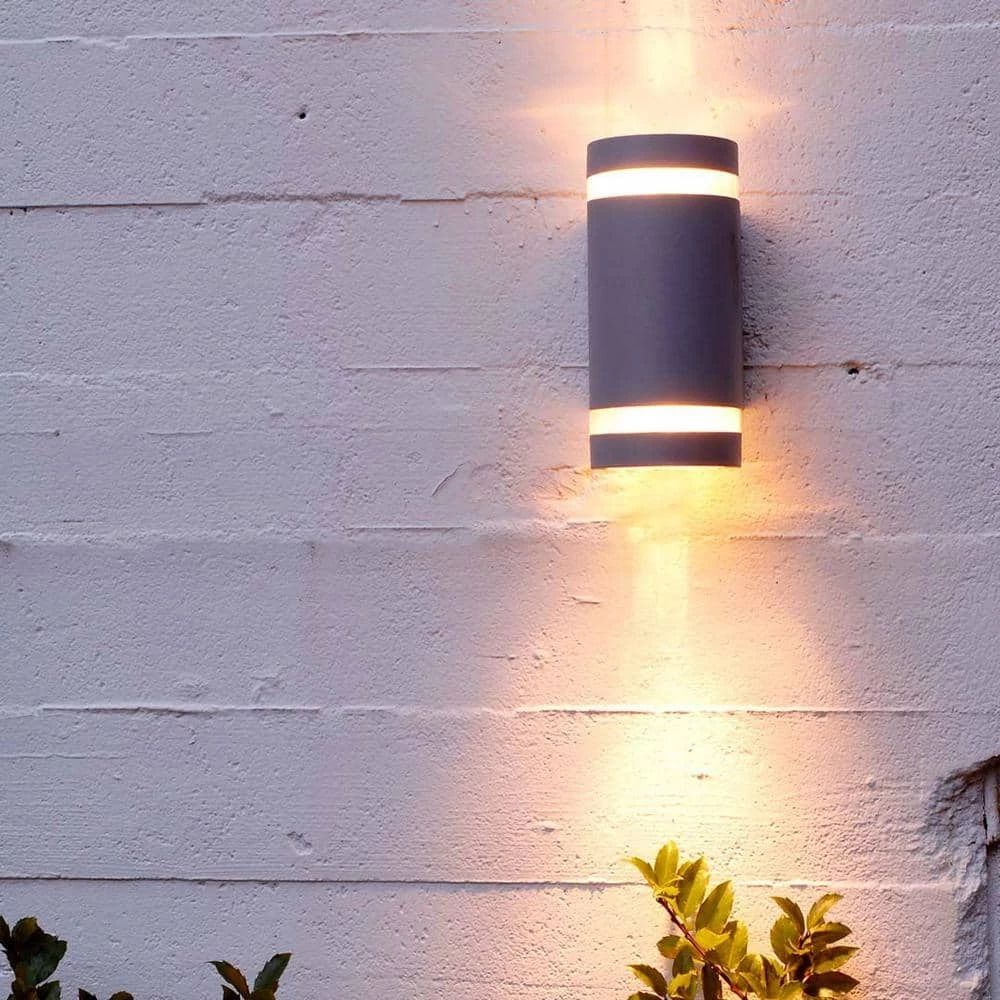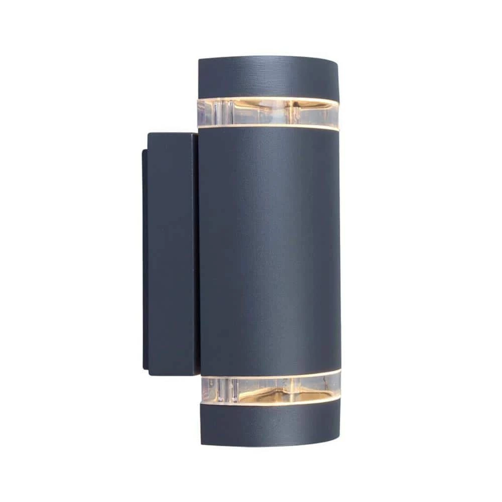 Dark gray LED wall mount sconce. Featuring an up/down light. Enhances the curb appeal of your home. Unique modern design. Approved for wet locations.