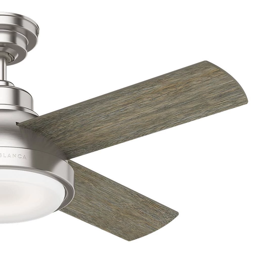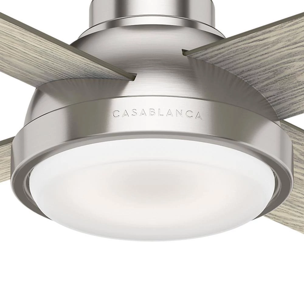 The Levitt modern industrial style ceiling fan is inspired by factory hood lighting with its curved bell shape, cased white glass and an integrated LED light. Rustic, hand painted real wood veneer blades compliment the nostalgic era of the fan body. The Levitt features a Casablanca exclusive wall control with the receiver preinstalled for easy installation. Explore this rustic ceiling fans various sizes and finishes to find the best ceiling fan for your decor while maintaining the style you love throughout your home.