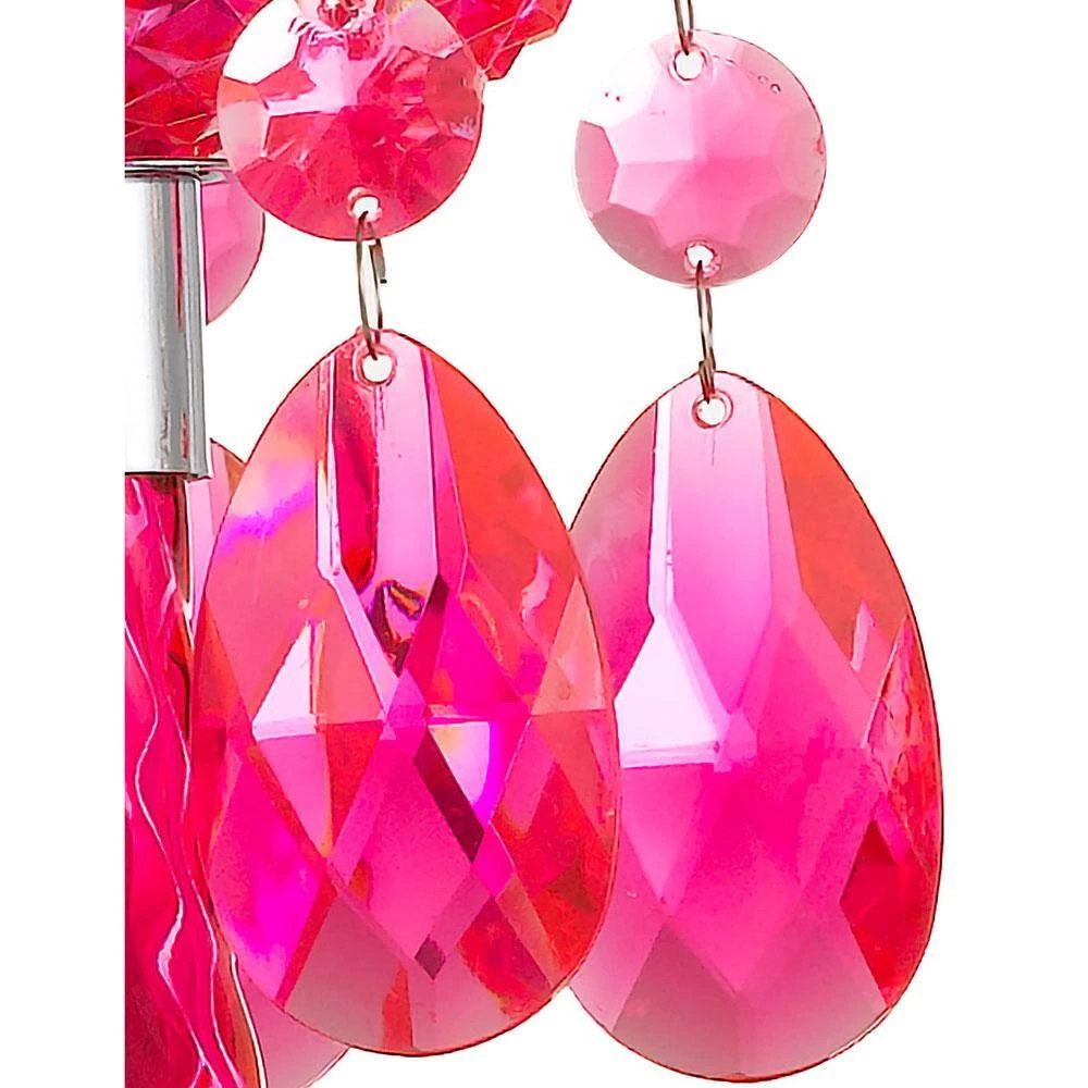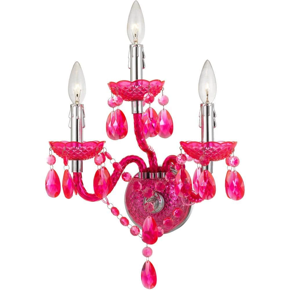Nothing is quite as elegant as the 3-light wall sconce from the Naples Collection. With its sleek, chrome finish dressed in pink acrylic beads and ornaments, this wall sconce will add an elegant sparkle to any room or hallway it’s placed in. The sloped arms and acrylic candle discs dangle a chain of beads and ornaments that lend a special atmosphere in any home. Pair this sconce with other pieces in the Naples Collection to give the interior a luxurious style and feel.