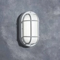 Coastal Cape Cod White Outdoor Integrated LED Wall Mount Barn Light Sconce Lantern by LUTEC