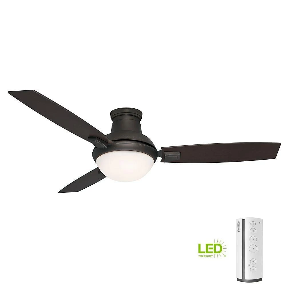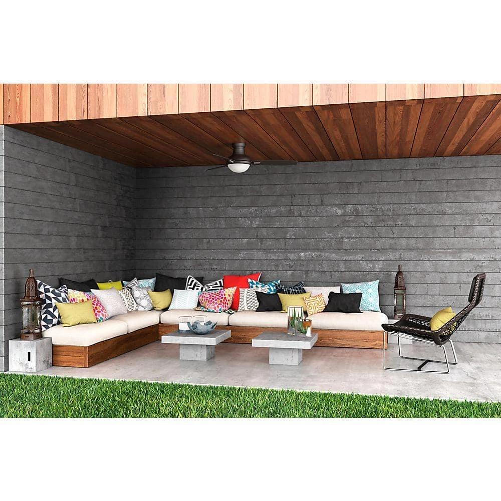 This sleek triple-blade 54 in. contemporary fan is all about flexibility. Complete with both low profile and down-rod options, the integrated LED light will highlight your room. Or forego the light and focus on the beauty of the fan (no-light cap is included). Whether installed indoors, or in an exterior covered room, the damp-rated Verse will provide inspiration to any setting.